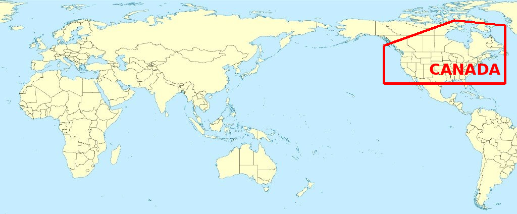 I presented each the same Pacific-Centered map with the same prompt: “Find Canada on this map. Highlight the specific borders.”